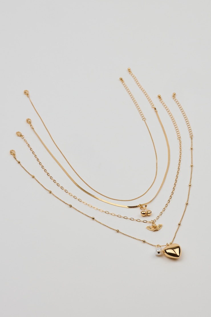Set of 4 Angel and Cherry Pendant Necklaces Yellow